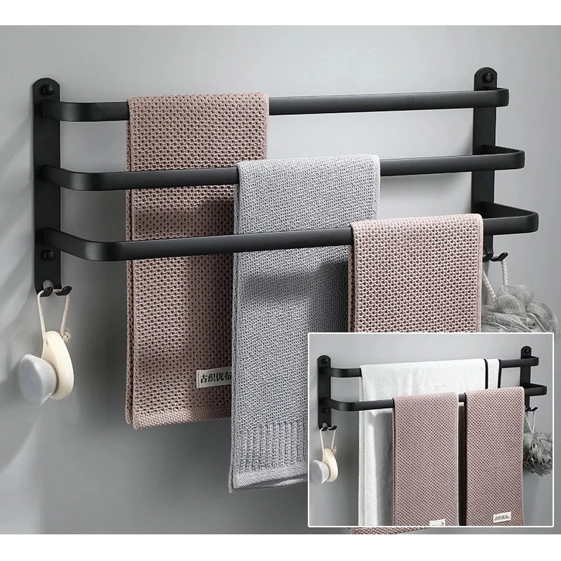 Bathroom Towel Hanger Black and White Brief Aluminum Rack with Hook
