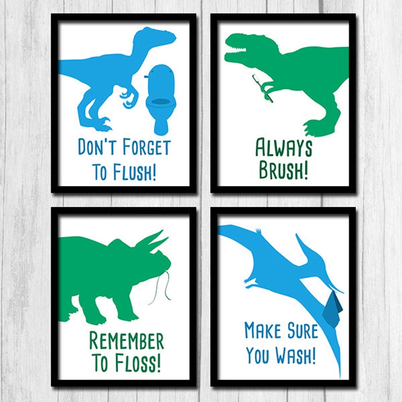 Wash Brush Floss Flush Printable Art Dinosaur Bathroom Kids Bathroom