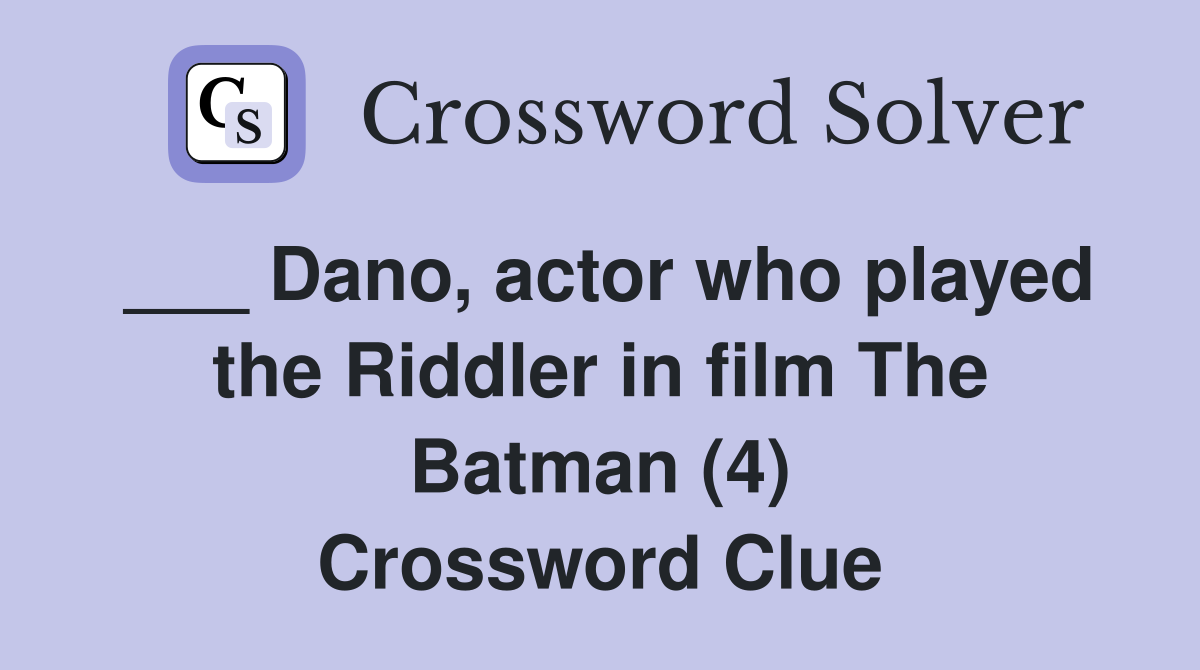 Dano actor who played the Riddler in film The Batman (4) Crossword