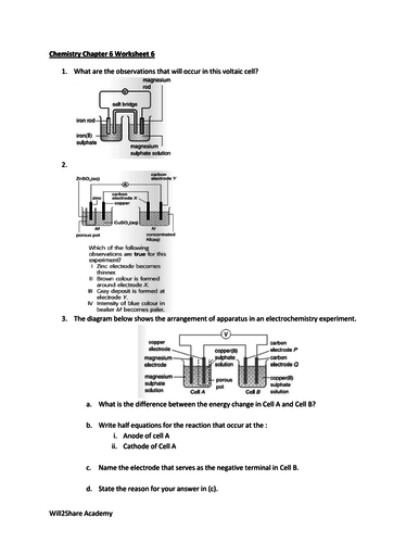 Electrochemistry Voltaic Cell Practice Worksheet by The Scientific