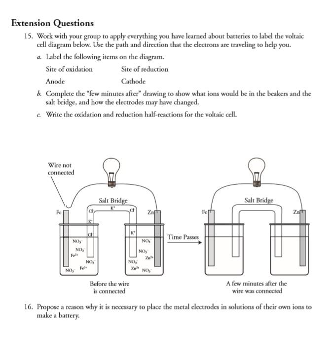 Batteries How Does A Battery Voltaic Cell Work Worksheet Answers
