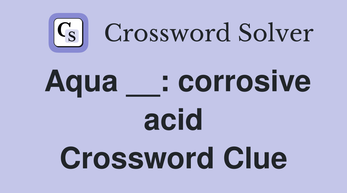 Aqua : corrosive acid Crossword Clue Answers Crossword Solver