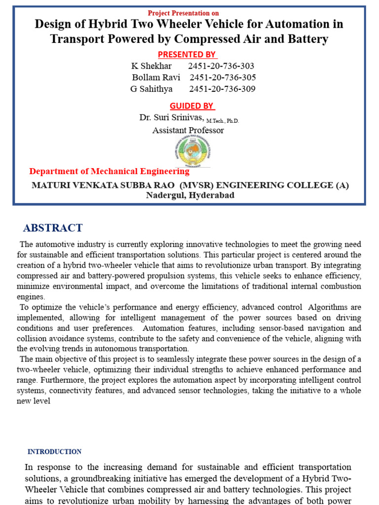 Design of Two Wheeler Hybrid Vehicle For Transport Automation Powered