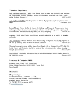 Bauer BBA Resume 2020 FirstName LastName Your phone number (Area Code
