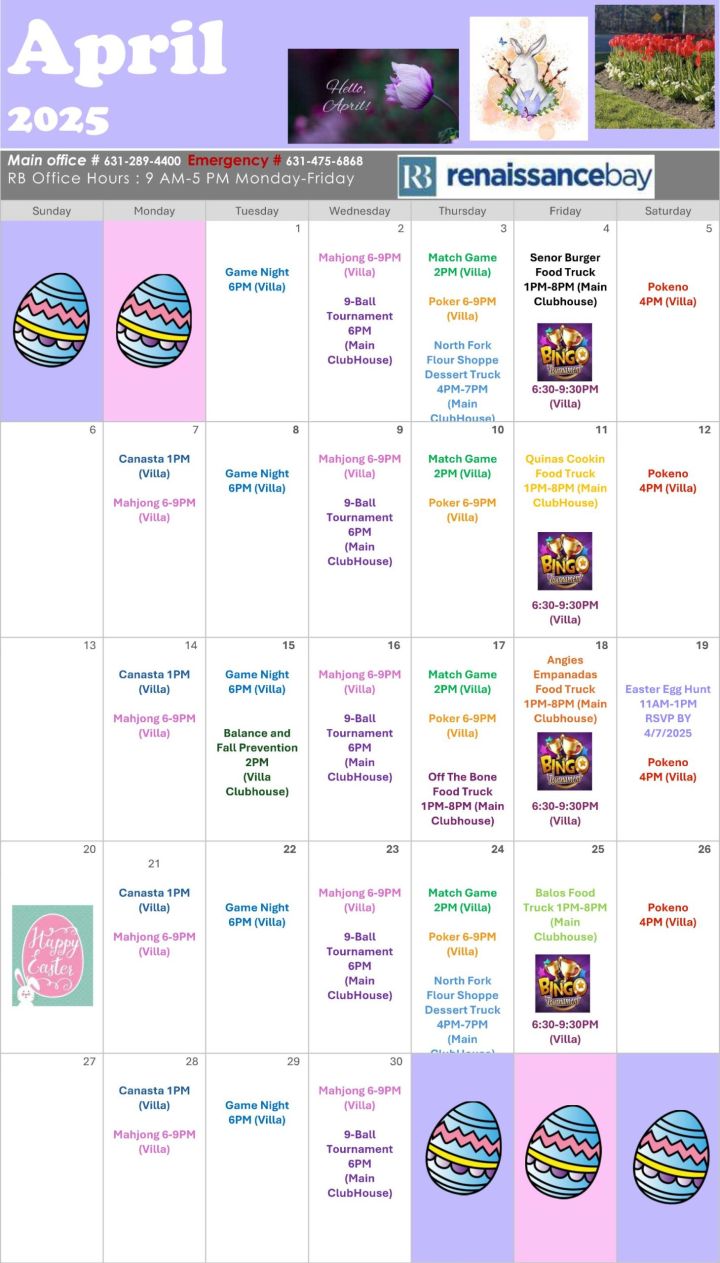 April 2025 Events Calendar Renaissance Bay