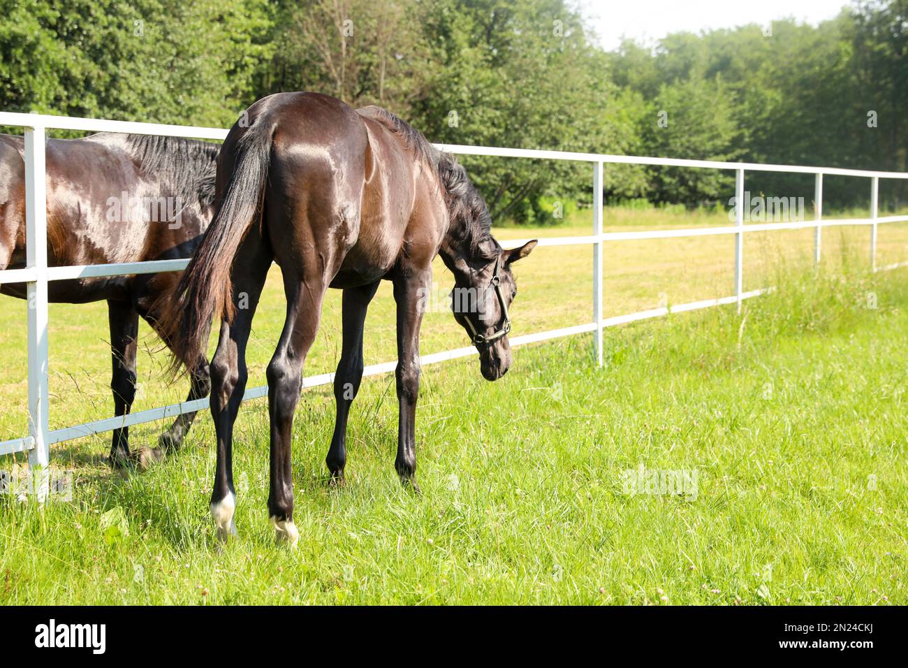 Dark bay horses grazing in hi res stock photography and images Alamy