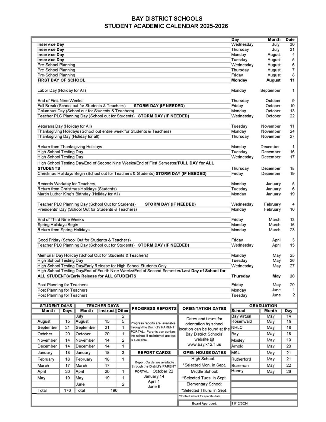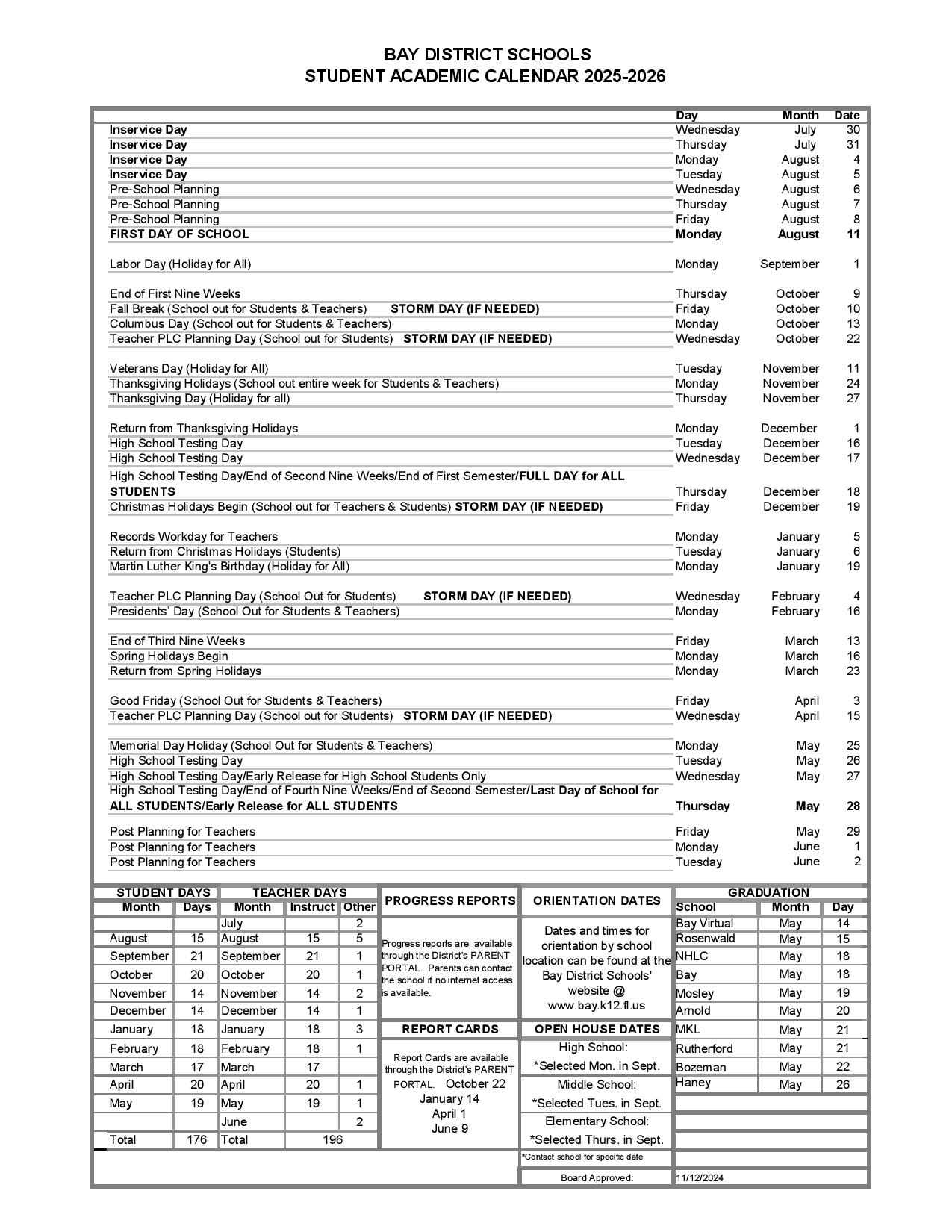 Bay District Schools Calendar 2024 2025 in PDF School Calendar Info