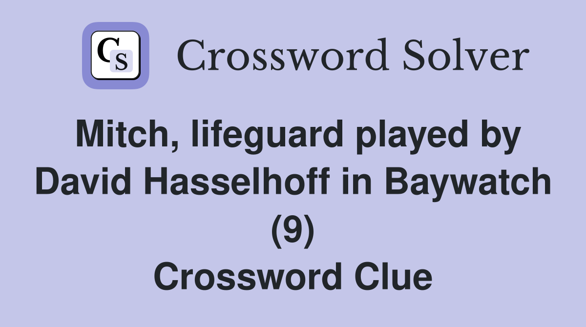 Mitch lifeguard played by David Hasselhoff in Baywatch (9) Crossword