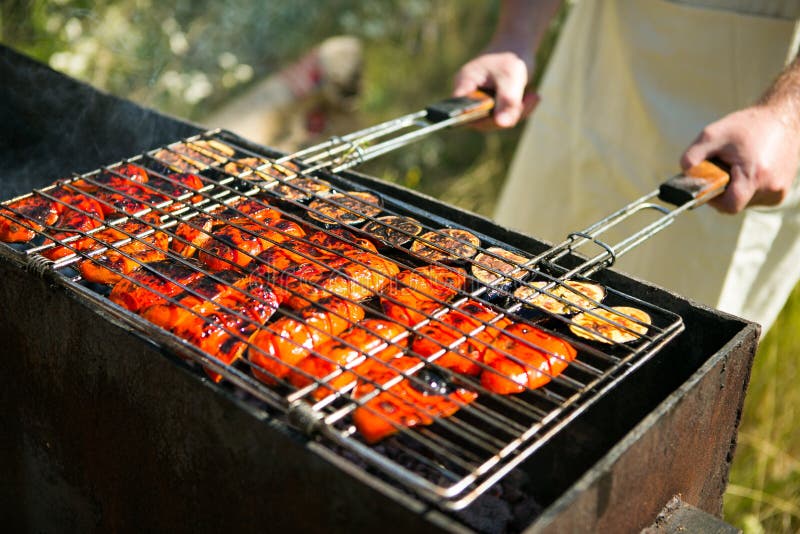 Fire on an Outdoor Summer BBQ or Picnic Stock Photo Image of