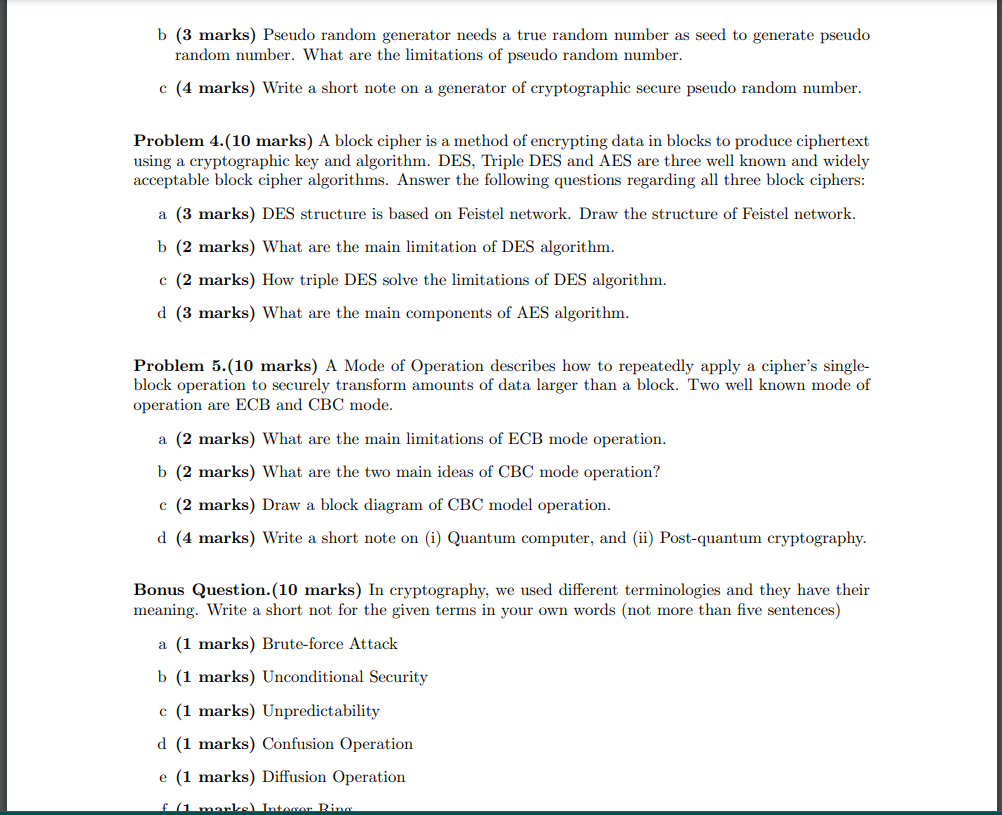 Solved Problem 1 (10 marks) Modular Arithmetic is the basis Chegg com
