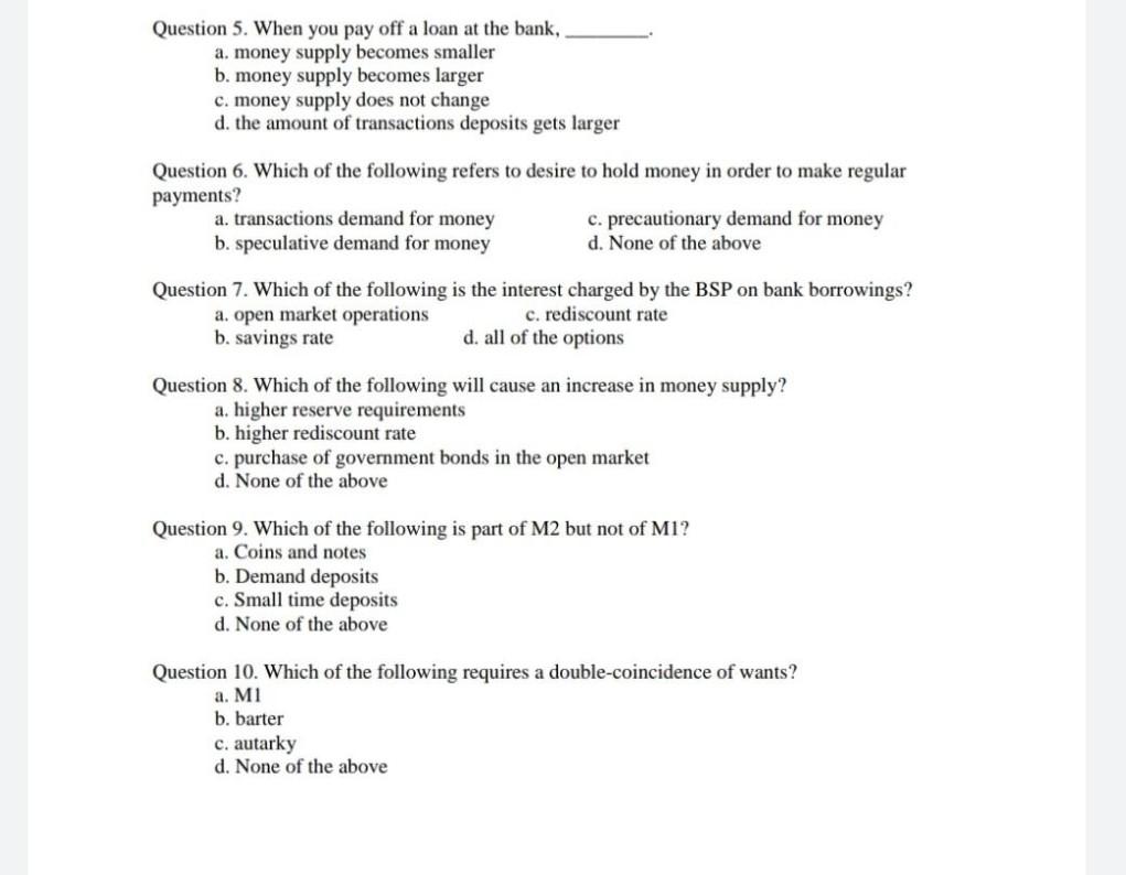 Solved Question 5 When you pay off a loan at the bank a Chegg com