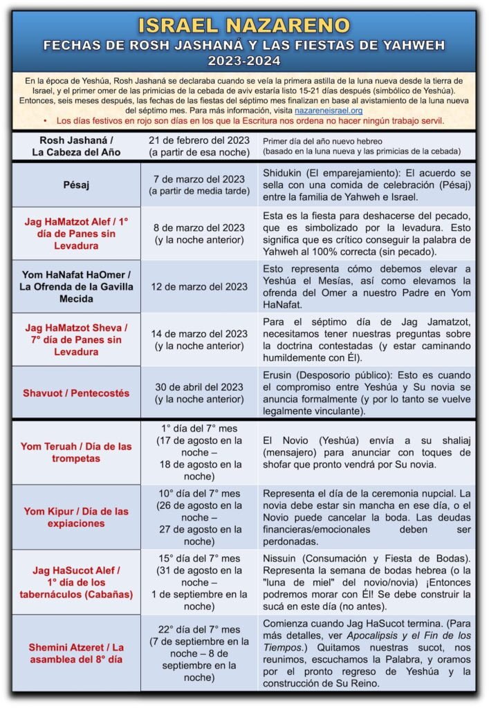 CALENDARIO OFICIAL DE LAS FIESTAS DEL 7º MES: Israel Nazareno