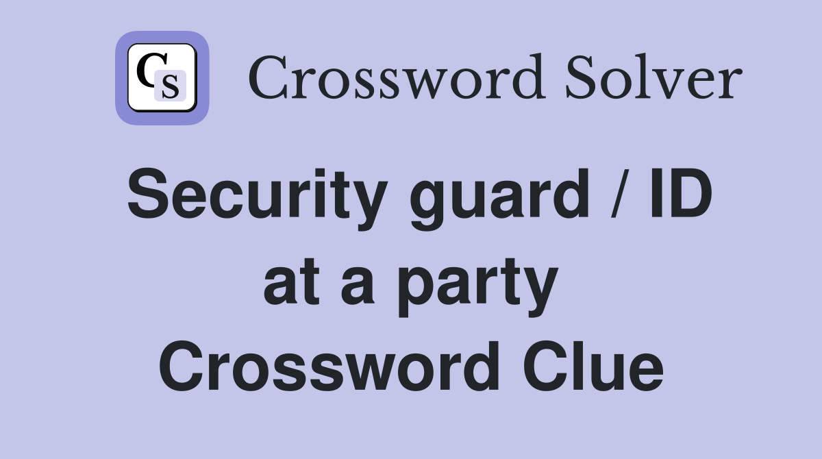 Security guard / ID at a party Crossword Clue Answers Crossword Solver