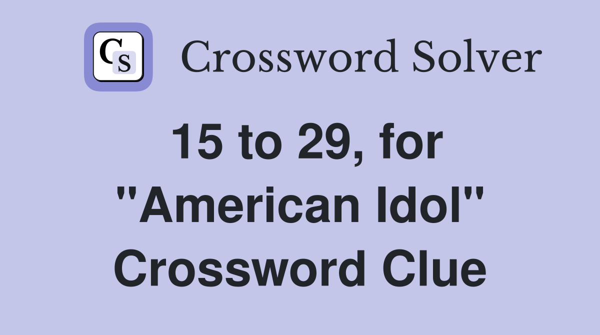 15 to 29 for quot American Idol quot Crossword Clue Answers Crossword Solver