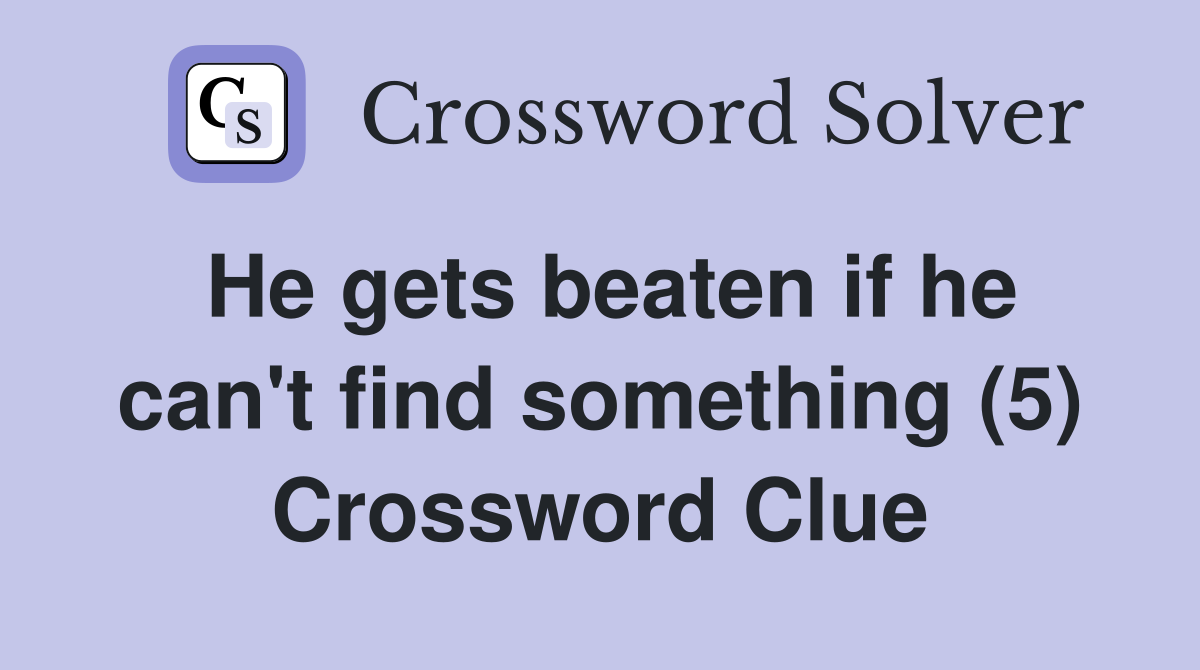 He gets beaten if he can #39 t find something (5) Crossword Clue Answers