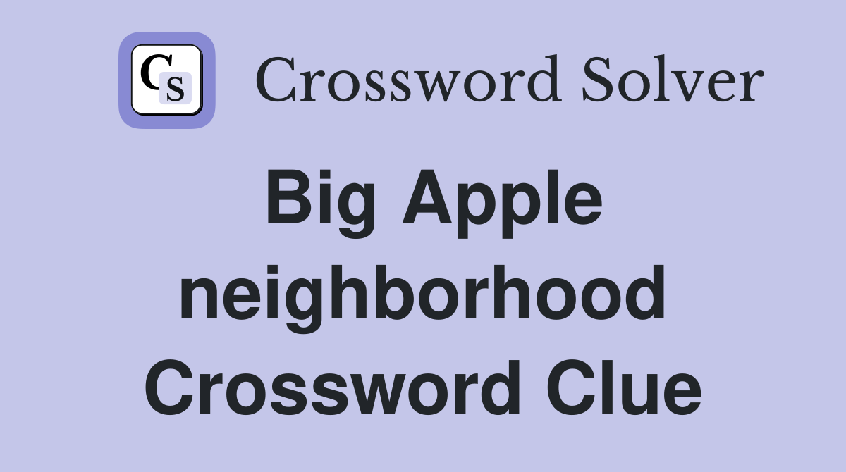 Big Apple neighborhood Crossword Clue Answers Crossword Solver