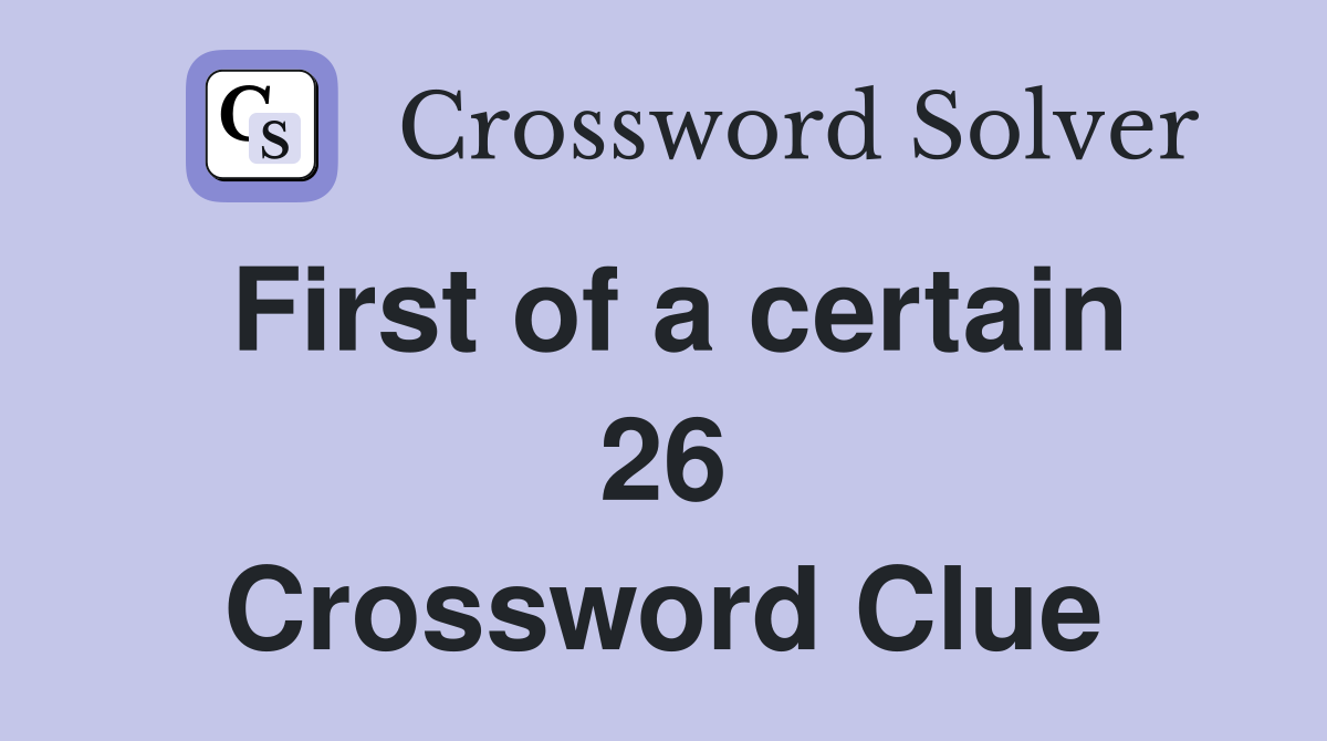 First of a certain 26 Crossword Clue Answers Crossword Solver