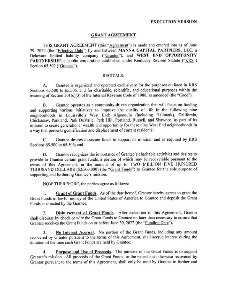 Grant Agreement WEOP/Manna Capital Partners PDF