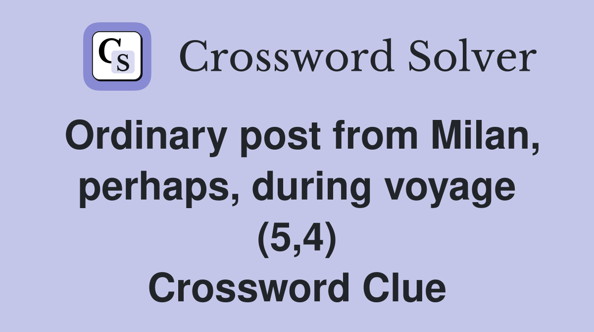 Ordinary post from Milan perhaps during voyage (5 4) Crossword Clue