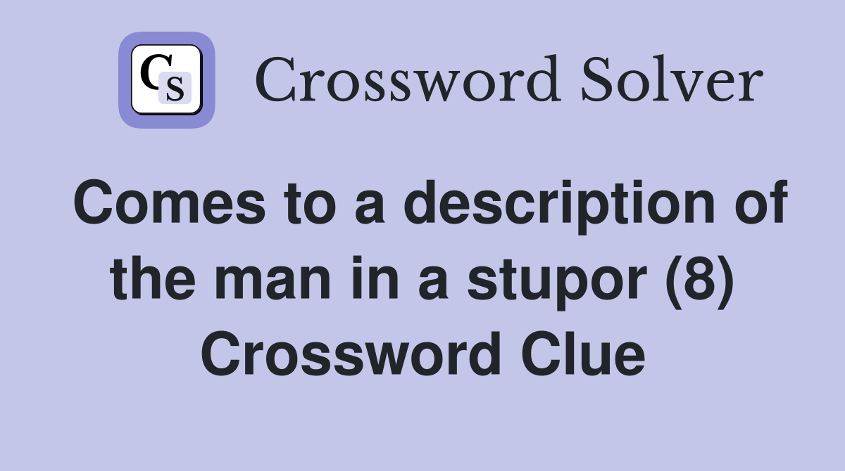Comes to a description of the man in a stupor (8) Crossword Clue