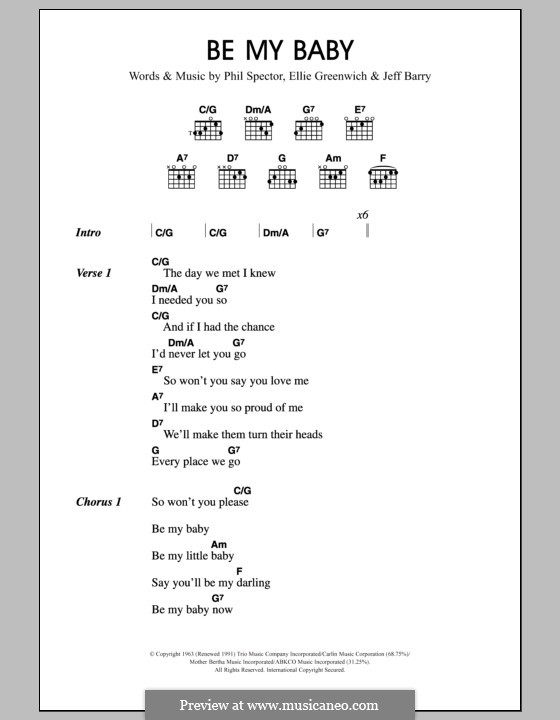 Be My Baby von E Greenwich J Barry P Spector Noten auf MusicaNeo