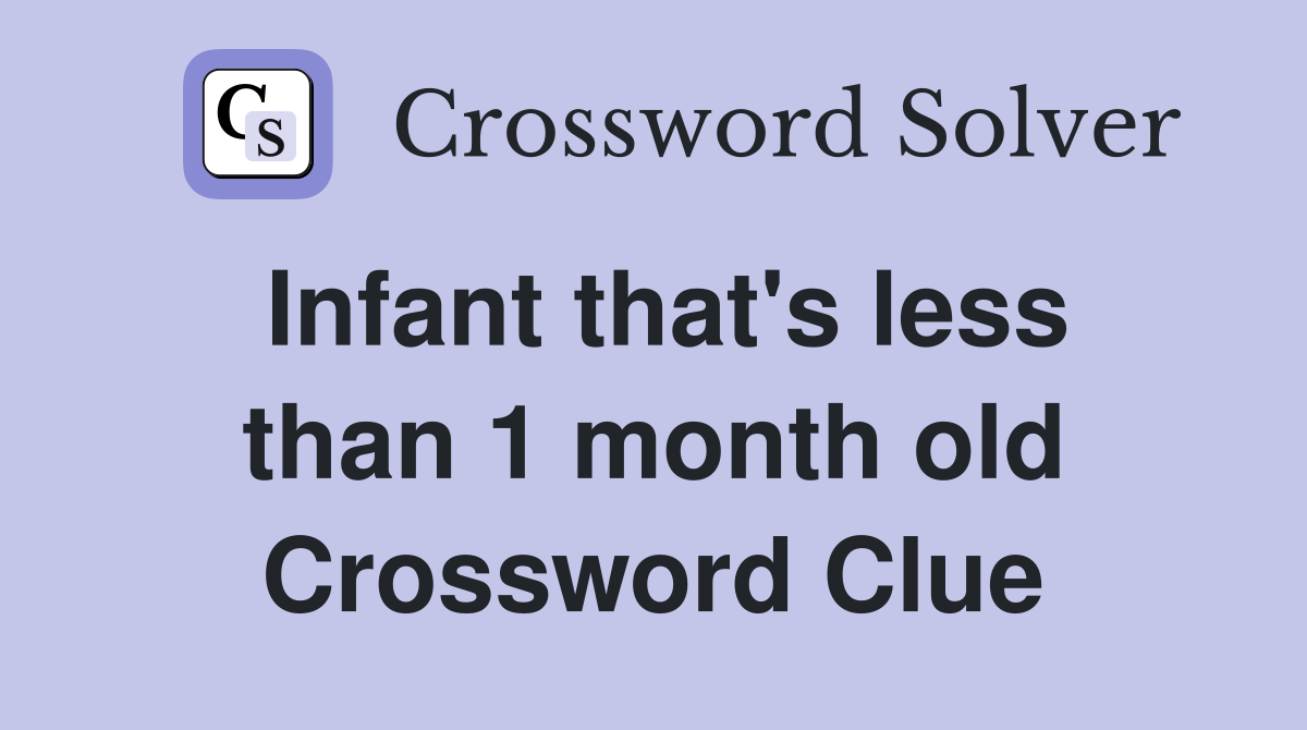 Infant that #39 s less than 1 month old Crossword Clue Answers