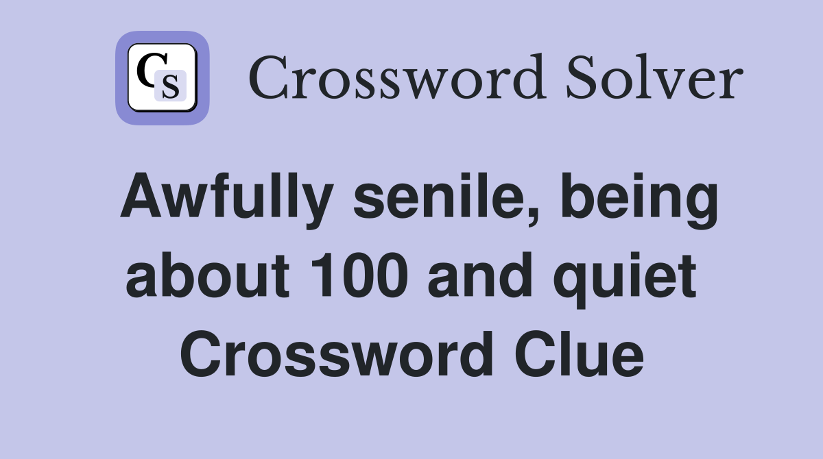 Awfully senile being about 100 and quiet Crossword Clue Answers