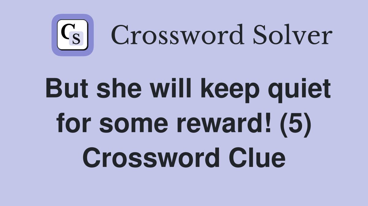 But she will keep quiet for some reward (5) Crossword Clue Answers