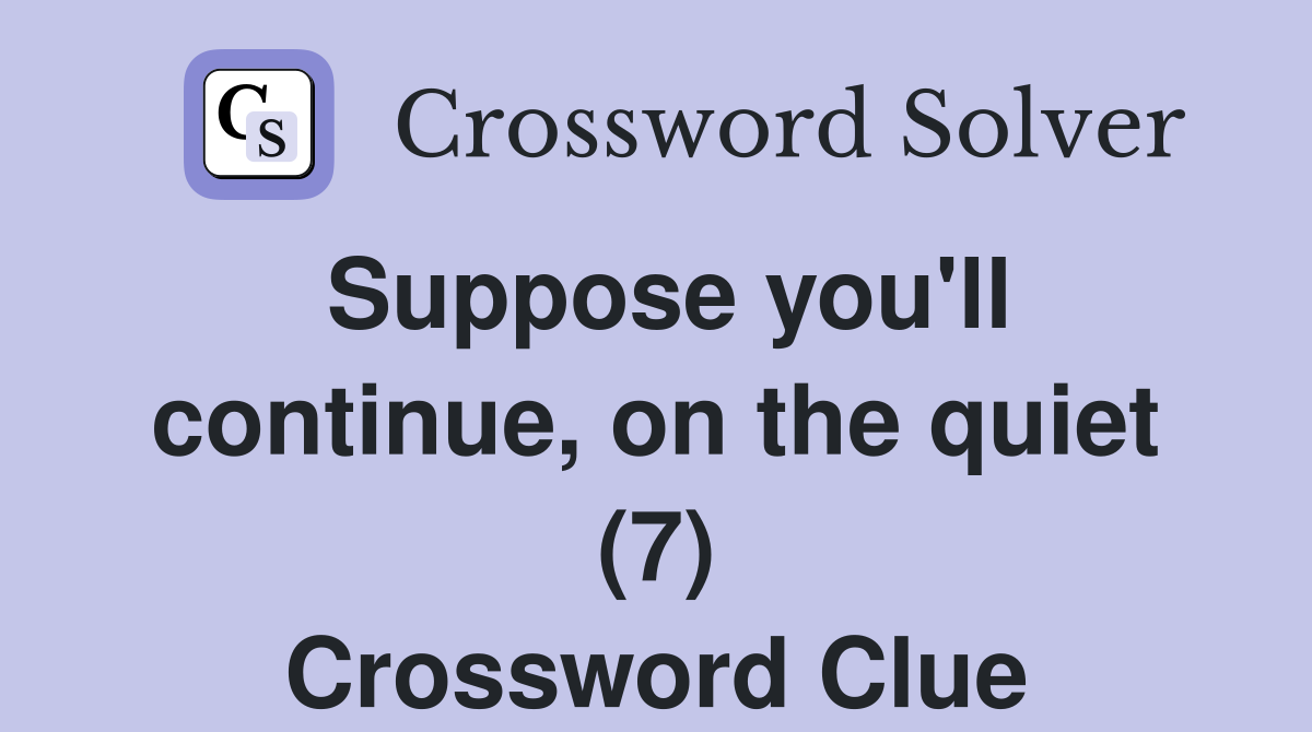 Suppose you #39 ll continue on the quiet (7) Crossword Clue Answers