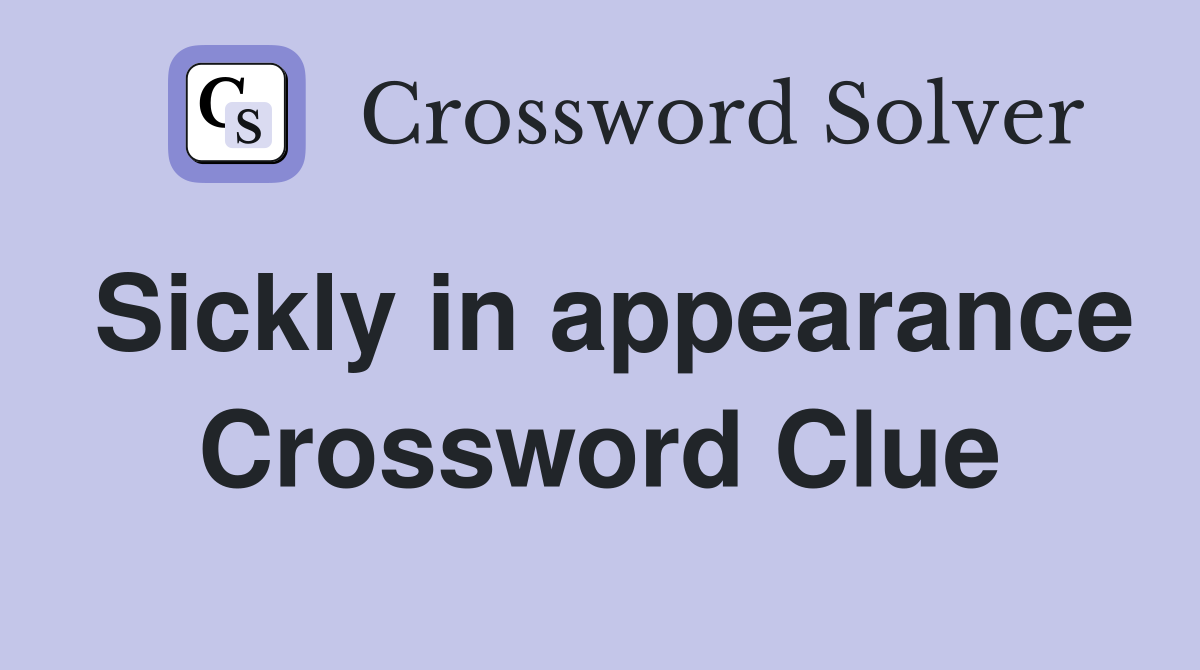 Sickly in appearance Crossword Clue Answers Crossword Solver