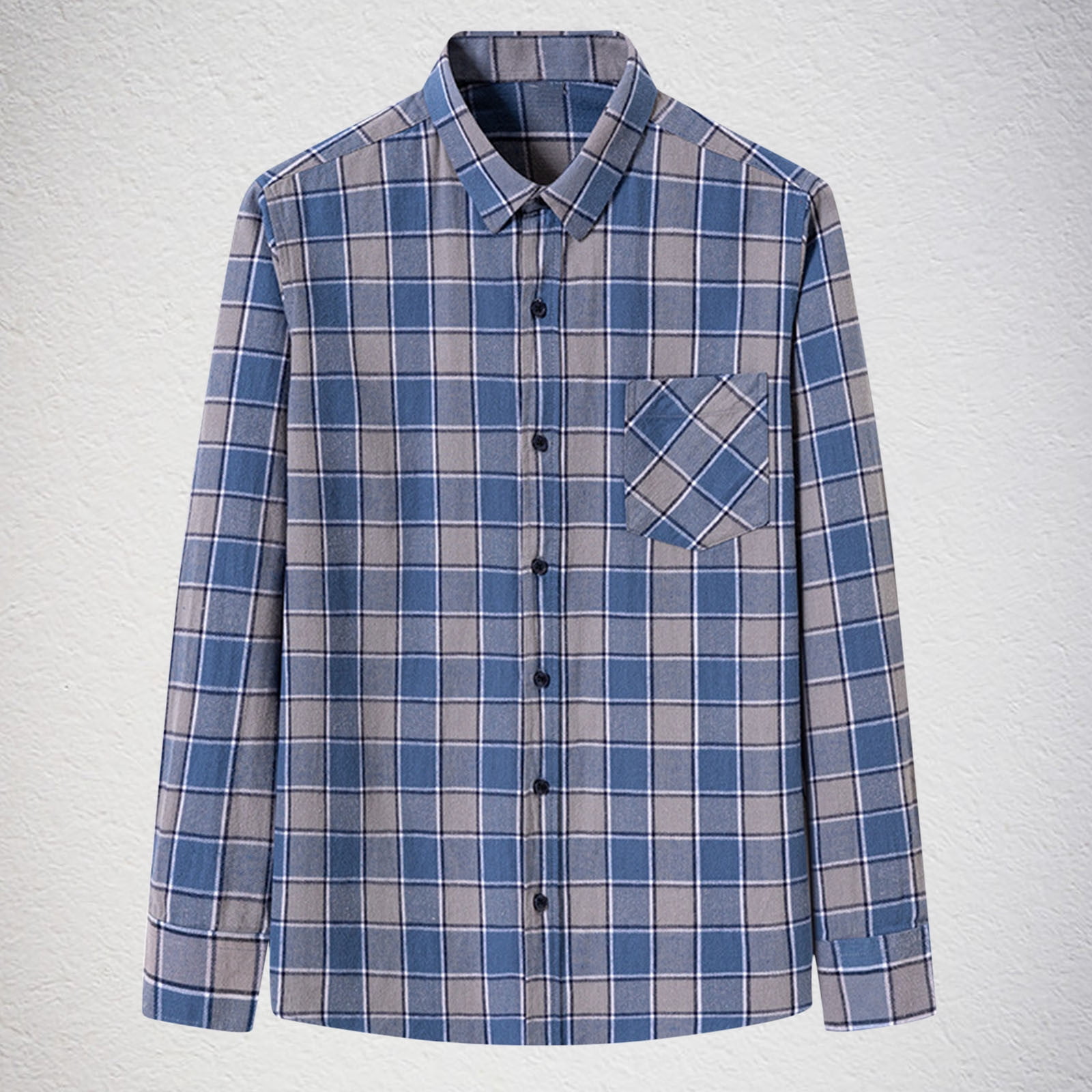 Afuyipoi Men Long Sleeved Button Up Shirts Flip Collar with Pocket