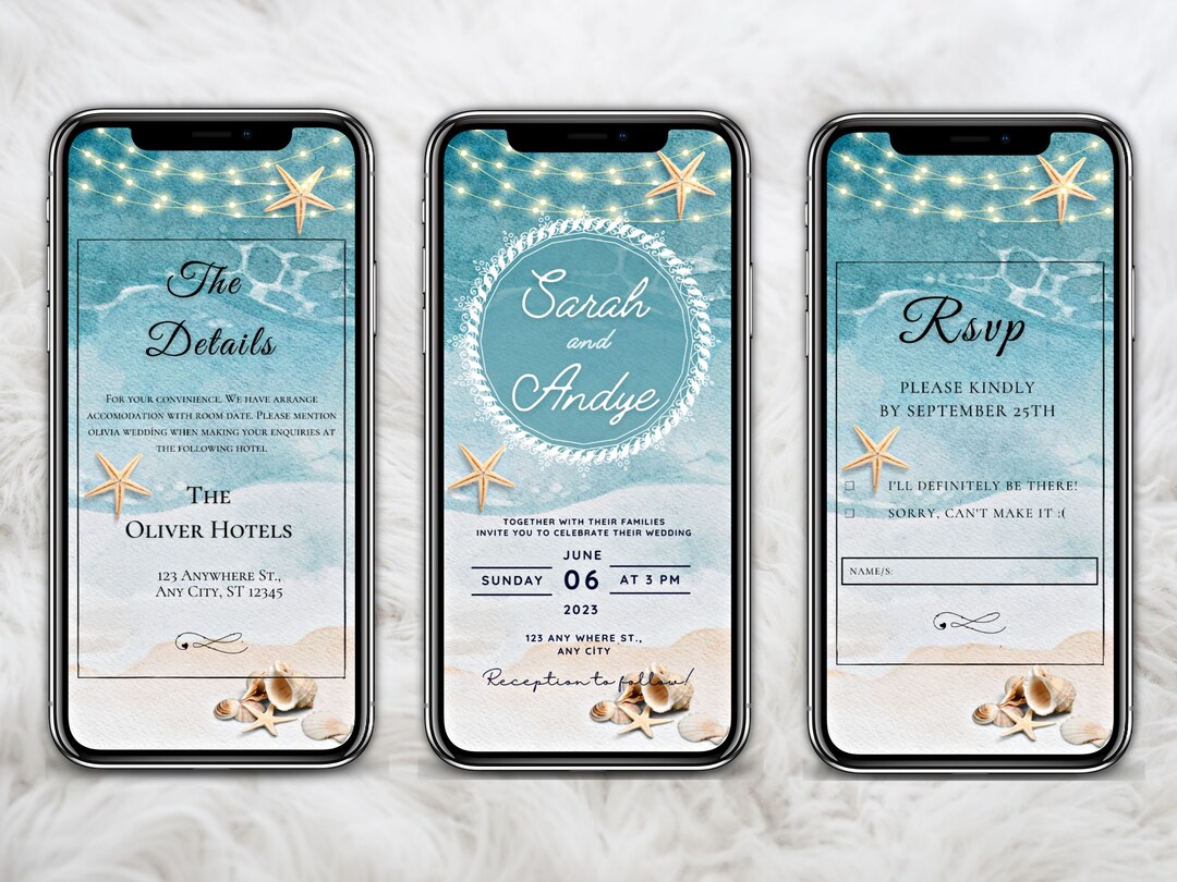 Beach Digital Wedding Invitation Template Suite Electronic Etsy