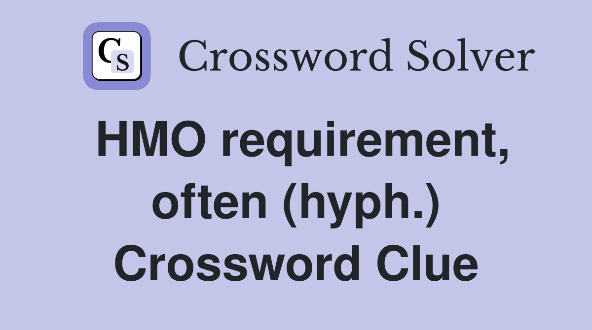 HMO requirement often (hyph ) Crossword Clue Answers Crossword Solver