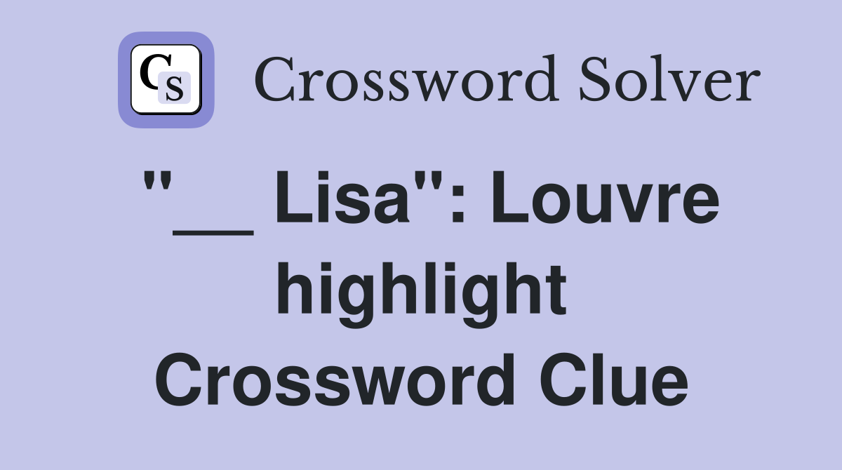 Lisa quot : Louvre highlight Crossword Clue Answers Crossword Solver