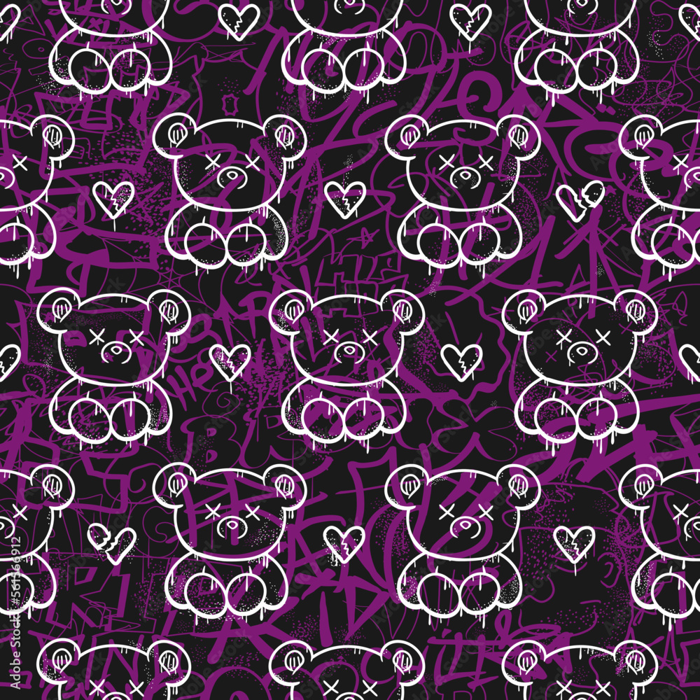 Graffiti and bear seamless pattern wallpaper art Vector graphic