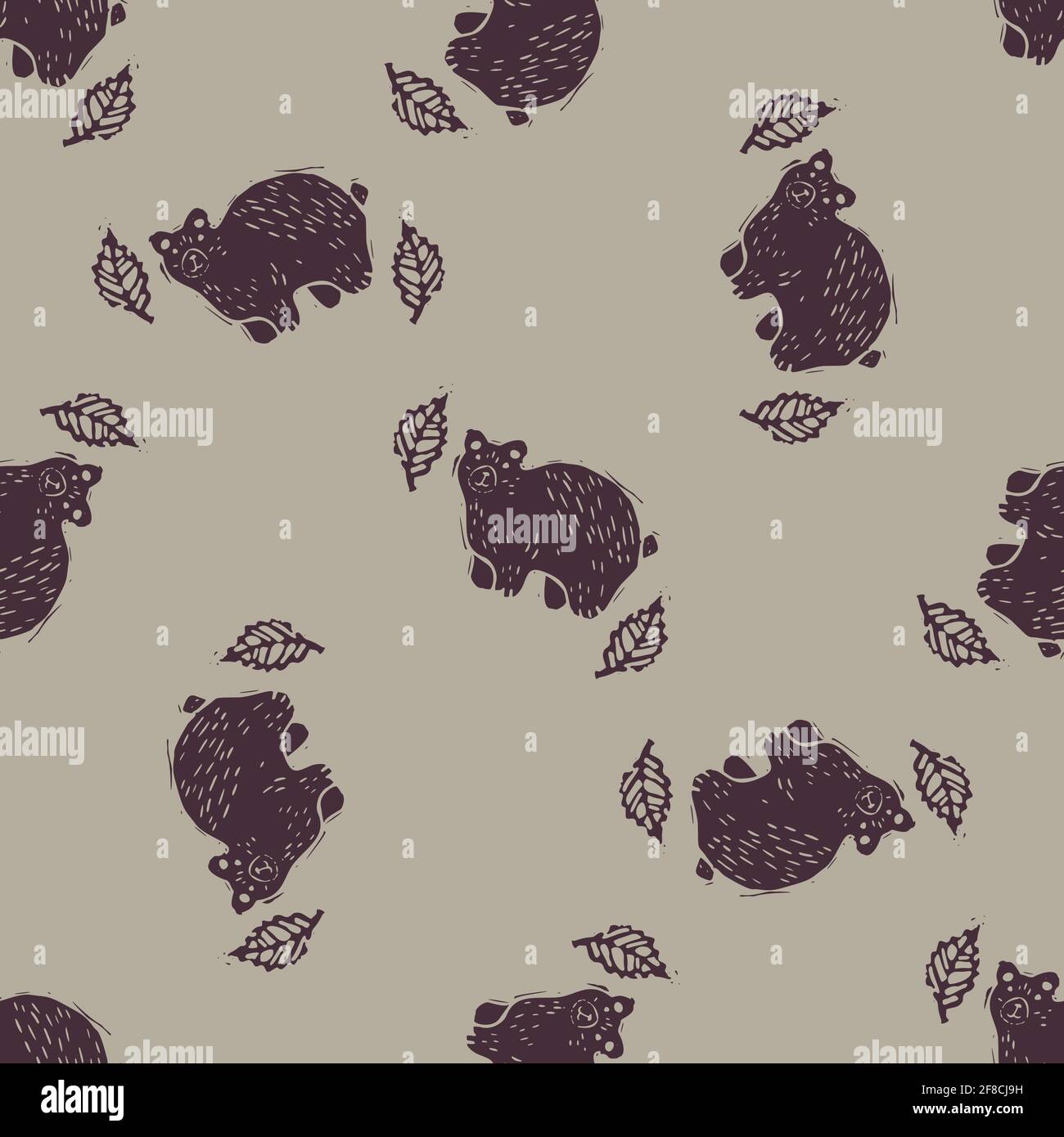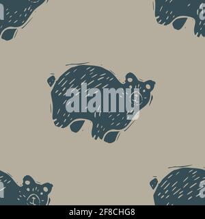 Handmade carved block print bear seamless pattern Rustic heritage folk