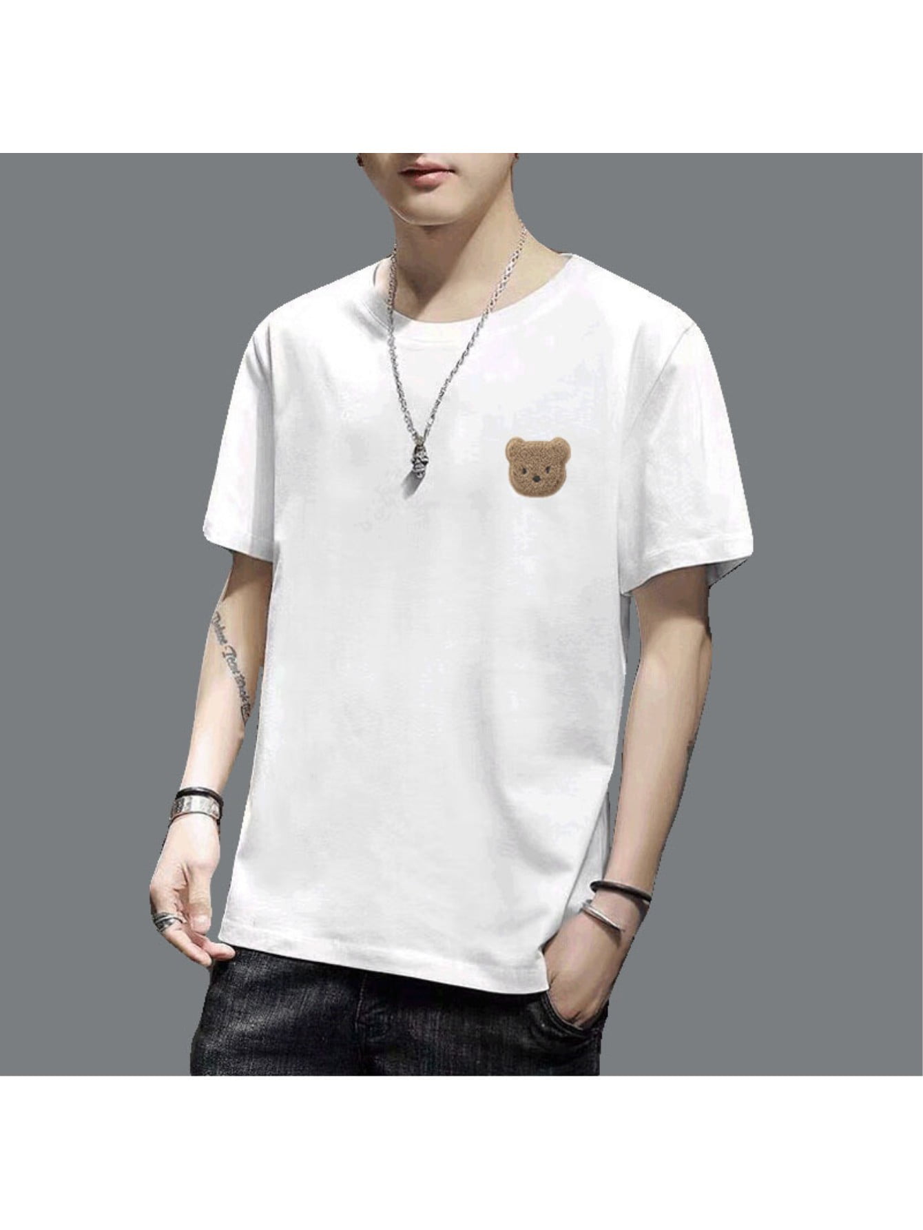 Bear Print Round Neck Comfortable Short sleeve Shirt with New Men #39 s