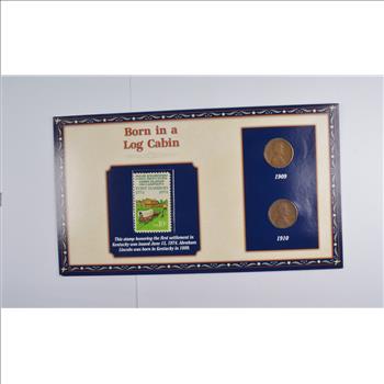 1909 1910 Lincoln Wheat Cents With Commemorative Stamp Log Cabin