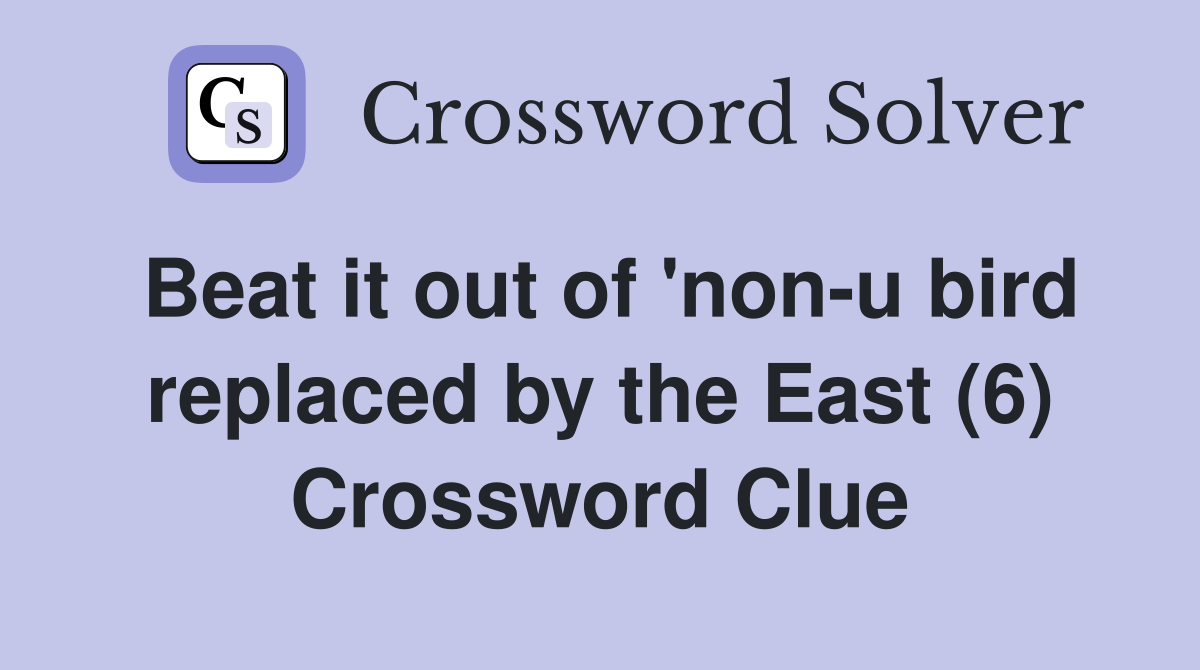 Beat it out of #39 non u bird replaced by the East (6) Crossword Clue