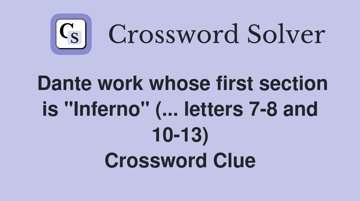 Dante work whose first section is quot Inferno quot ( letters 7 8 and 10 13