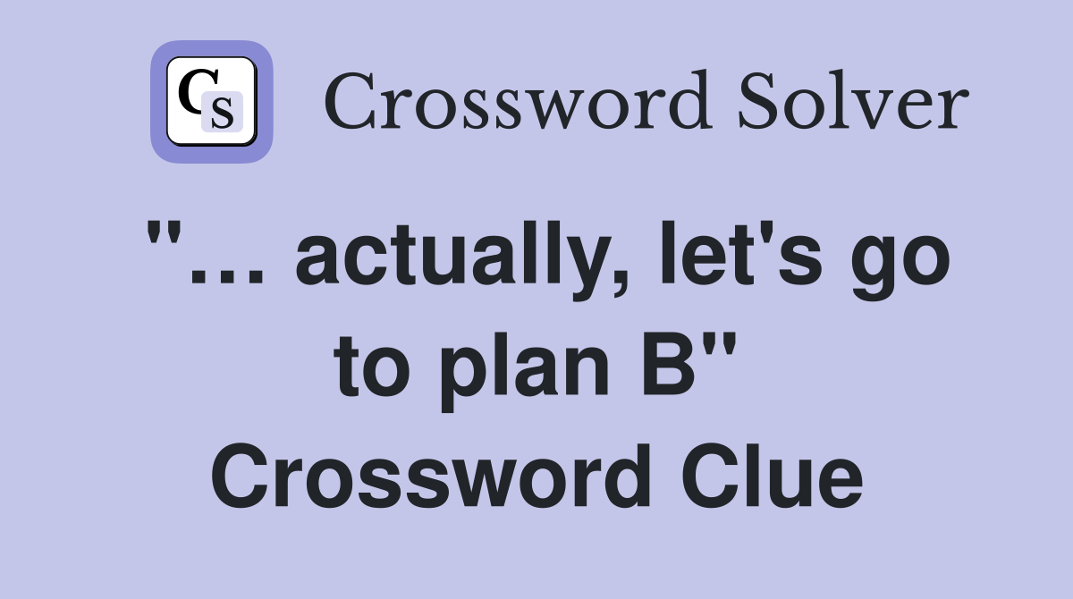 actually let #39 s go to plan B quot Crossword Clue Answers Crossword Solver