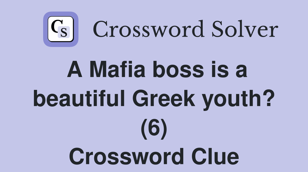 A Mafia boss is a beautiful Greek youth? (6) Crossword Clue Answers