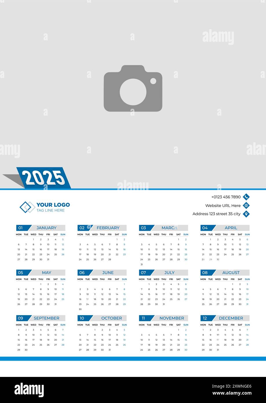 Beautiful Wall Calendar Design 2025 Template Weeks starts on Monday