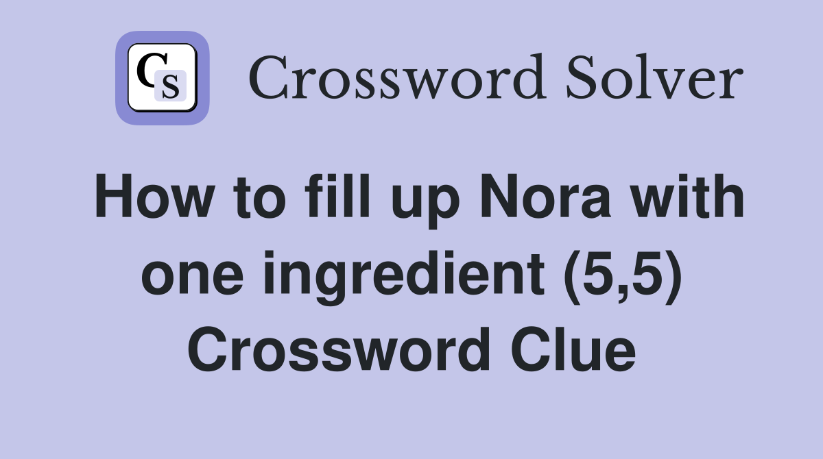 How to fill up Nora with one ingredient (5 5) Crossword Clue Answers