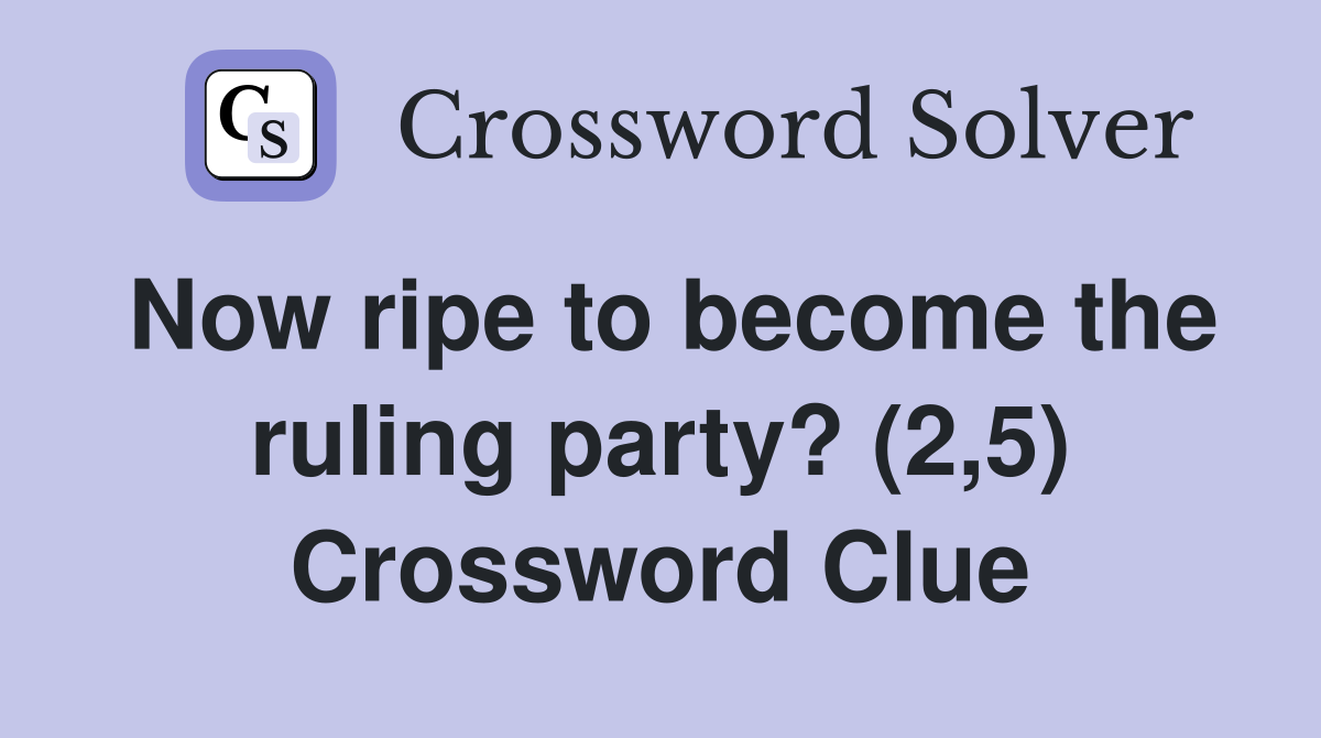 Now ripe to become the ruling party? (2 5) Crossword Clue Answers