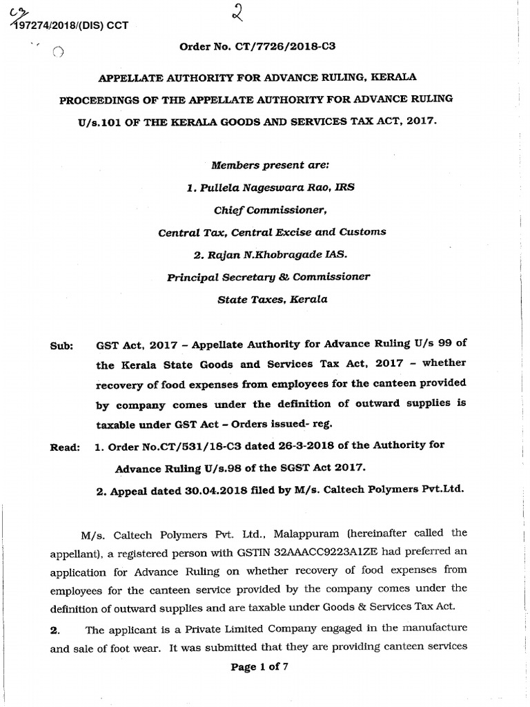 AAAR Canteen Expenses Recovered From Employees Liable To GST PDF