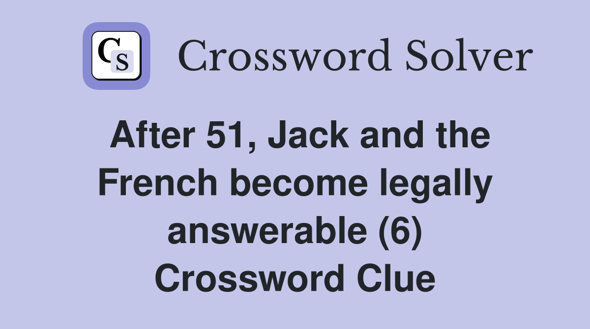 After 51 Jack and the French become legally answerable (6) Crossword