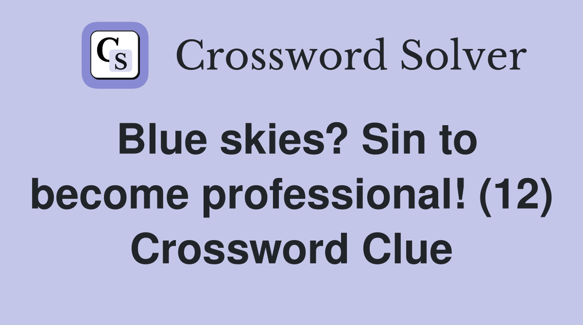 Blue skies? Sin to become professional (12) Crossword Clue Answers