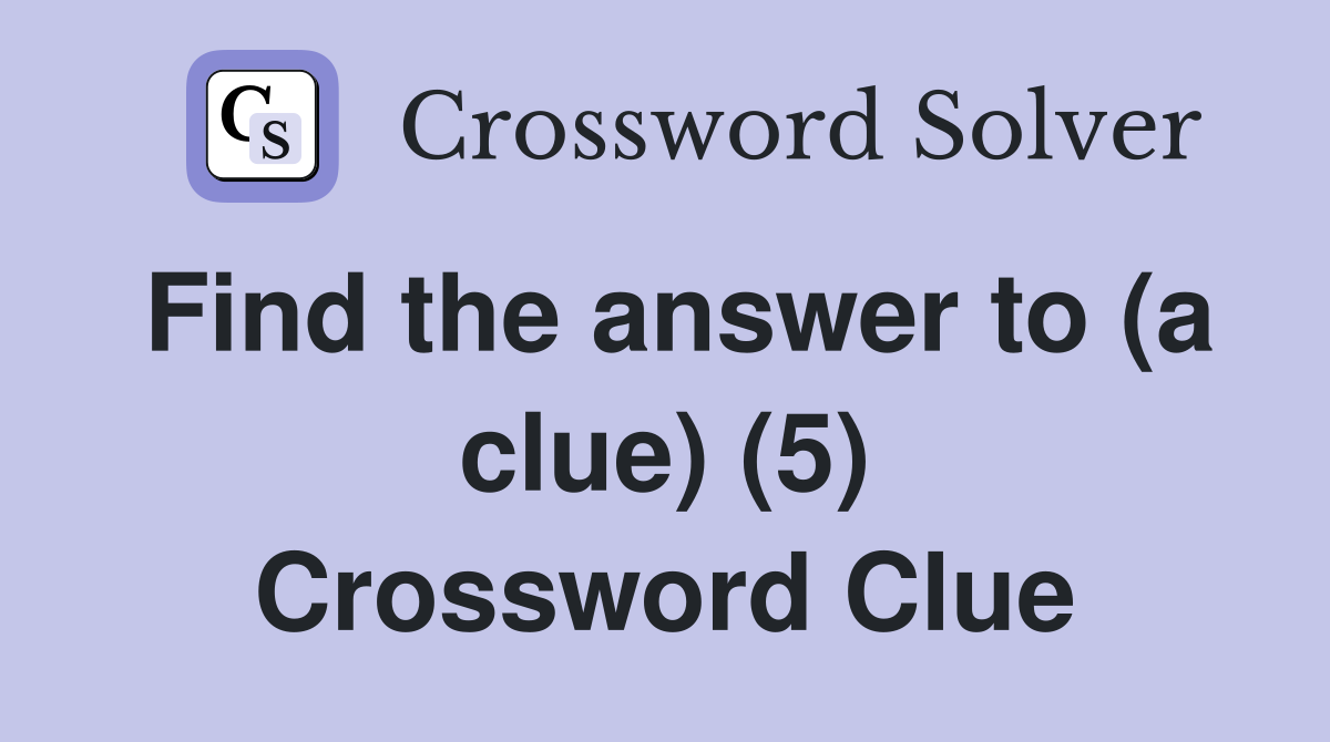 Find the answer to (a clue) (5) Crossword Clue Answers Crossword Solver
