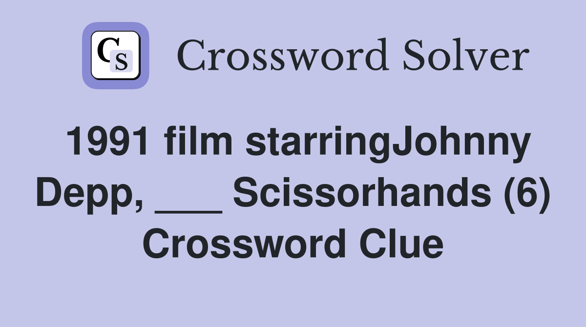 1991 film starringJohnny Depp Scissorhands (6) Crossword Clue